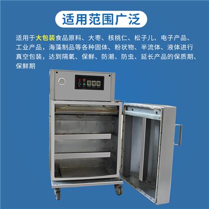 立柜式真空包裝機采用優(yōu)良不銹鋼材料結構,主要用于粉末、顆粒、半流體或大包裝物體的真空包裝。該機型真空室容積大,袋口立封形式??蛇B同產(chǎn)品外包裝(如:箱、桶、盒)。直接擱置于真空室內(nèi),抽真空,封口,冷卻,放氣,全過程均可自動控制及完成。開門式的操作形式,便于重物擱置。(該型機可根據(jù)用戶特殊尺寸、配置要求定做)。